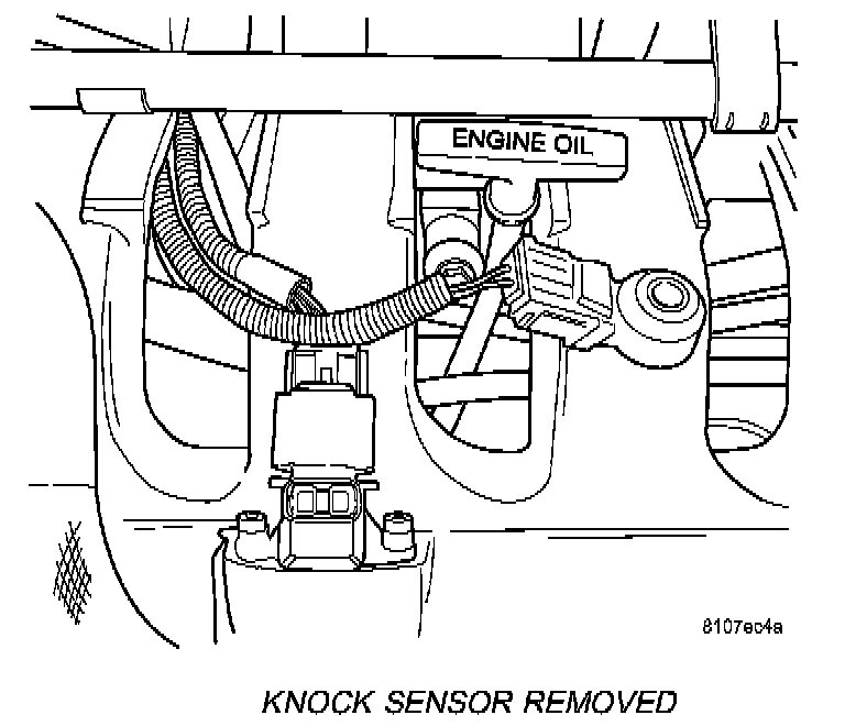 1. Install knock sensor. Tighten knock sensor bolt to 22 Nm (195 in. lbs.) torque. Over or under tightening effects knock sensor performance, possibly causing improper spark control.