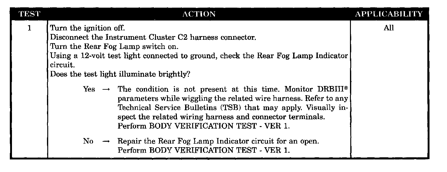 Rear Fog Lamp Indicator Inoperative - BUX Only
