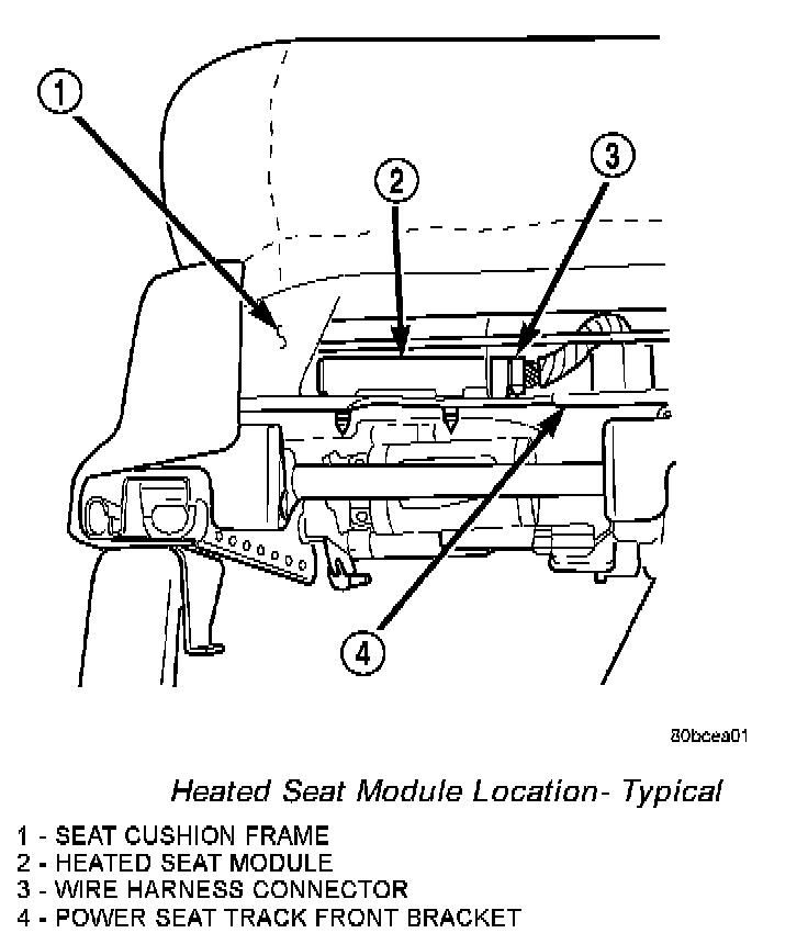 1. If the two plastic push-in fasteners for the heated seat module were damaged during removal, install new fasteners onto the heated seat module.