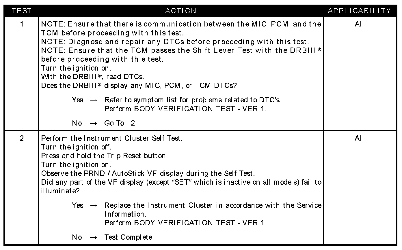 PRND OR AUTOSTICK DISPLAY INOPERATIVE OR INACCURATE