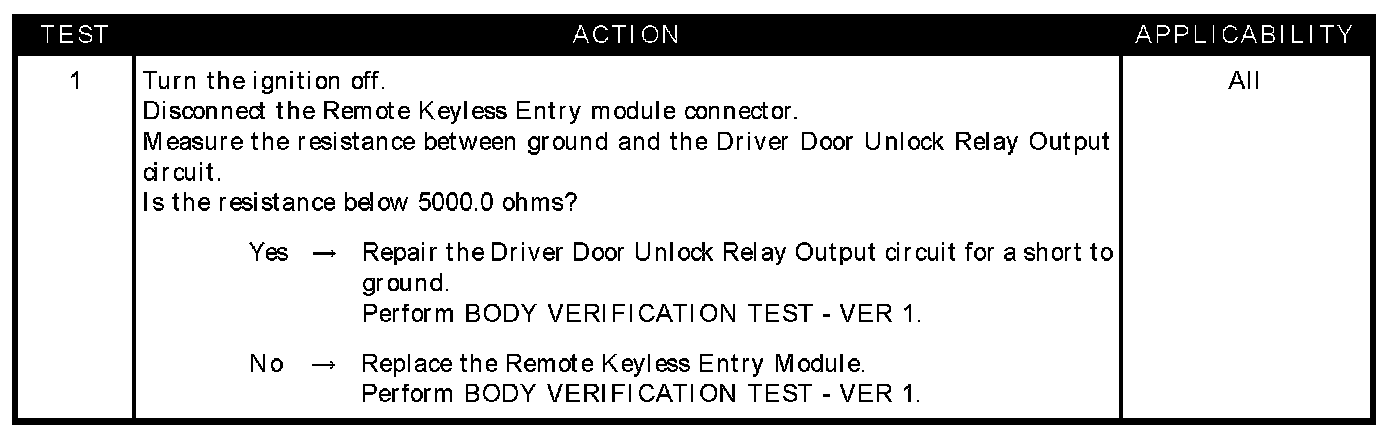 Driver door unlock relay output circuit short to ground