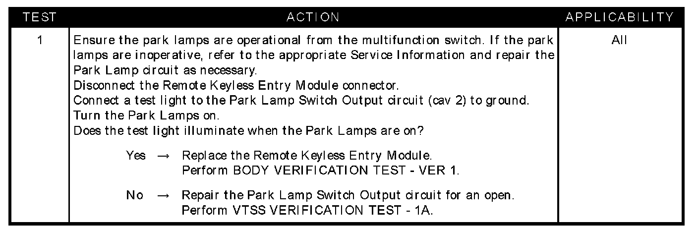 PARK LAMPS FAIL TO FLASH DURING ALARM