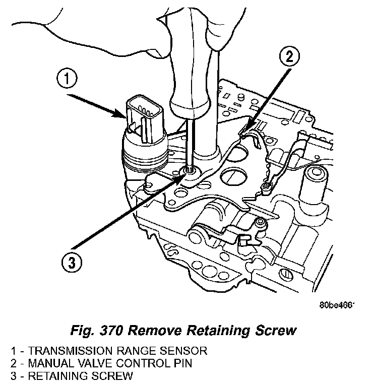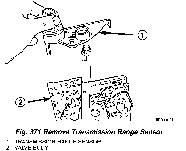 16. Slide Transmission Range Sensor up the manual shaft and remove (Fig. 371).