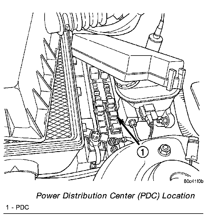 All of the electrical current distributed throughout this vehicle is directed through the standard equipment Power Distribution Center (PDC) . The molded plastic PDC housing is located in the left front corner of the engine compartment, just behind the air cleaner housing and the battery. The PDC housing has a molded plastic cover. The PDC cover is easily removed for service access and has a convenient fuse and relay layout label affixed to the inside surface of the cover to ensure proper component identification.