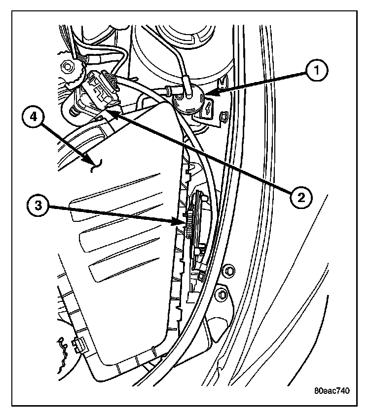 The Engine Control Module (ECM) (3) is located in the left side of engine compartment attached to the left inner fender behind the battery.