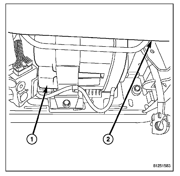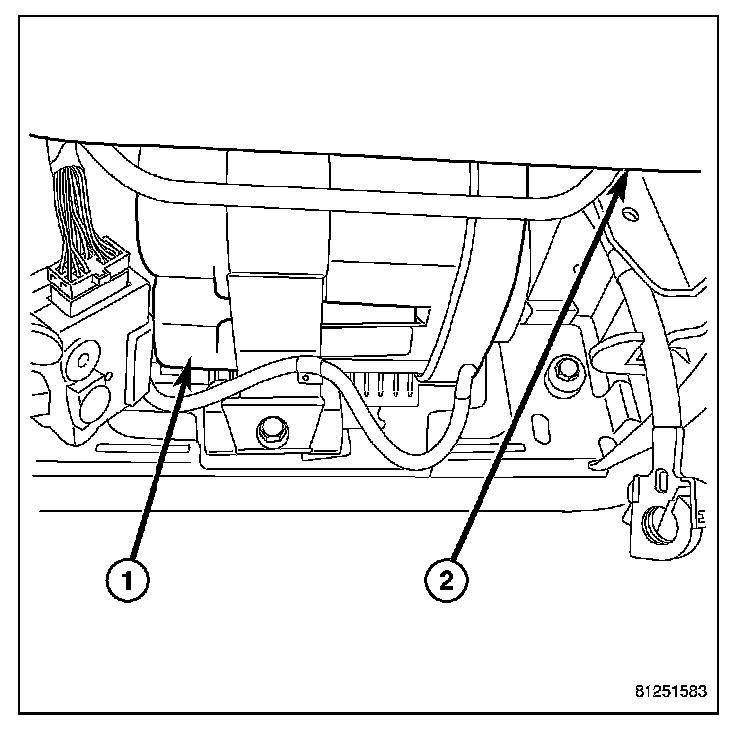 2. Install ECM (1) and mounting bracket (2) assembly in vehicle.