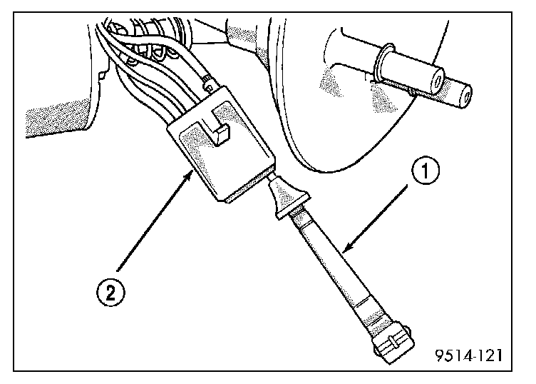 4. Using Special Tool C-4334 (1) terminal remover or equivalent, remove terminals from level sensor connector (2).