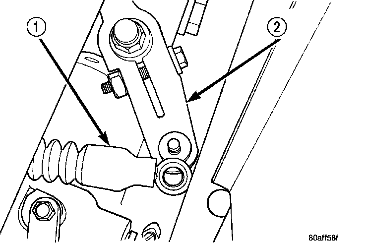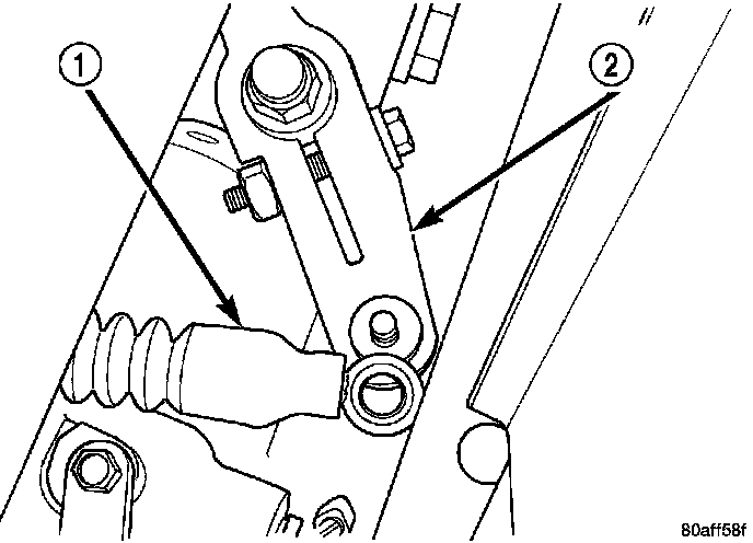 5. Disconnect gearshift cable (1) from manual valve lever(2).