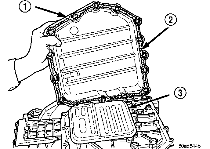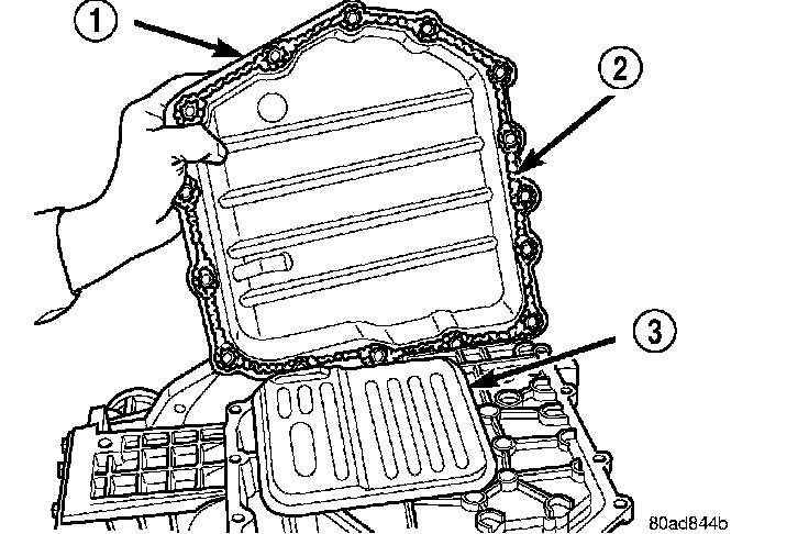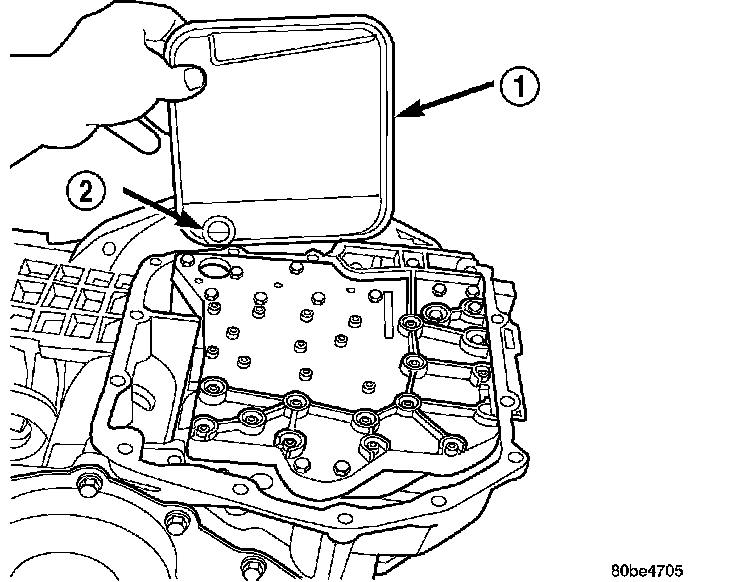 7. Install an 1/8� bead of RTV (2)and install pan (1) to case.
