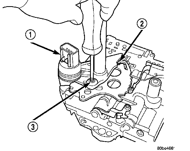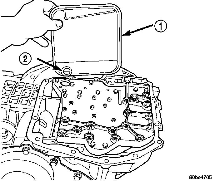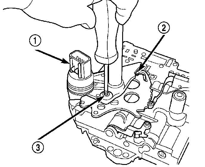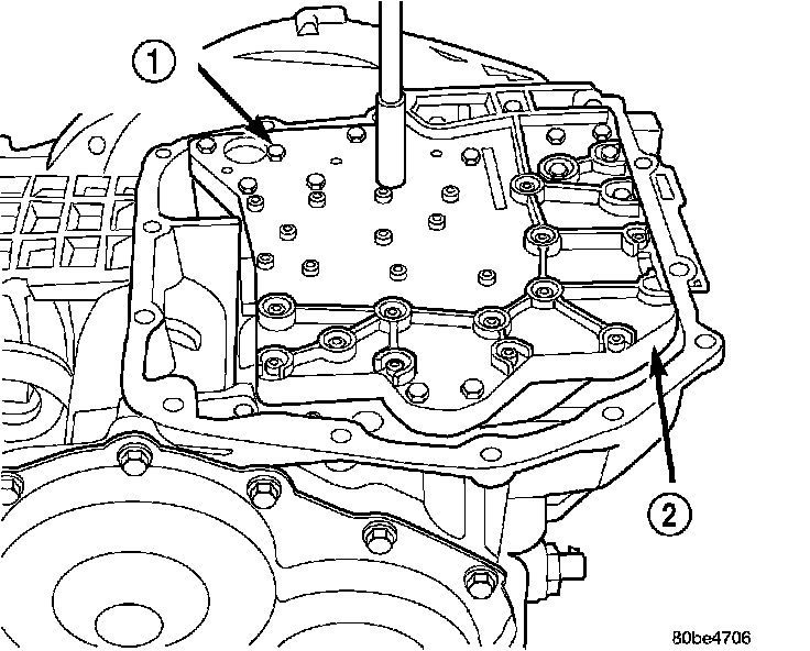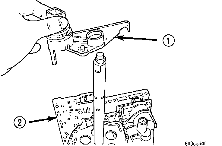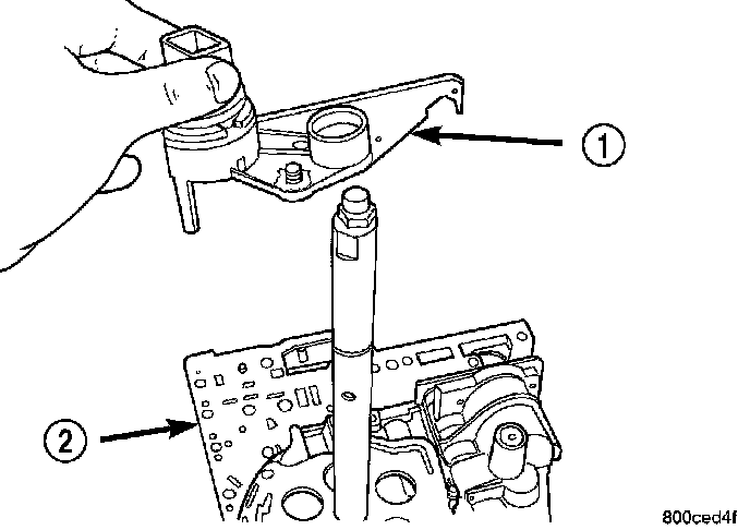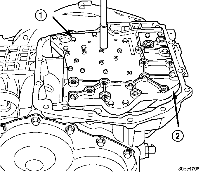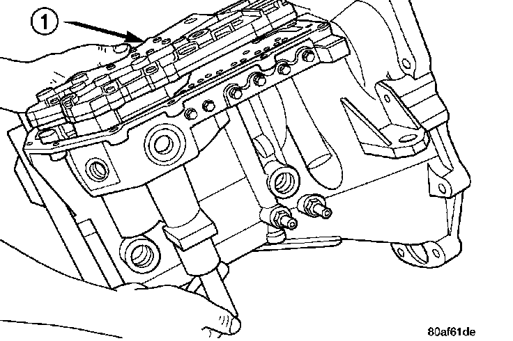 14. NOTE: To ease removal of the valve body (1), turn the manual valve lever fully clockwise to low or first gear.