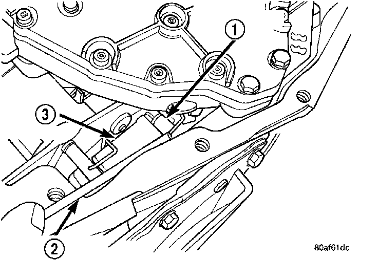 4. Guide park rod rollers (1) into guide bracket (3) while installing valve body to the transaxle case.