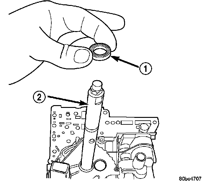 The valve body assembly (2) must be removed to gain access to and replace the transmission range sensor (1).