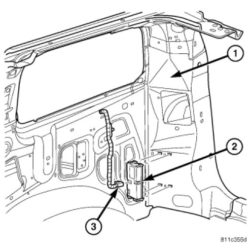 2. Connect the wire harness connector (3) to the heated seat module (2).