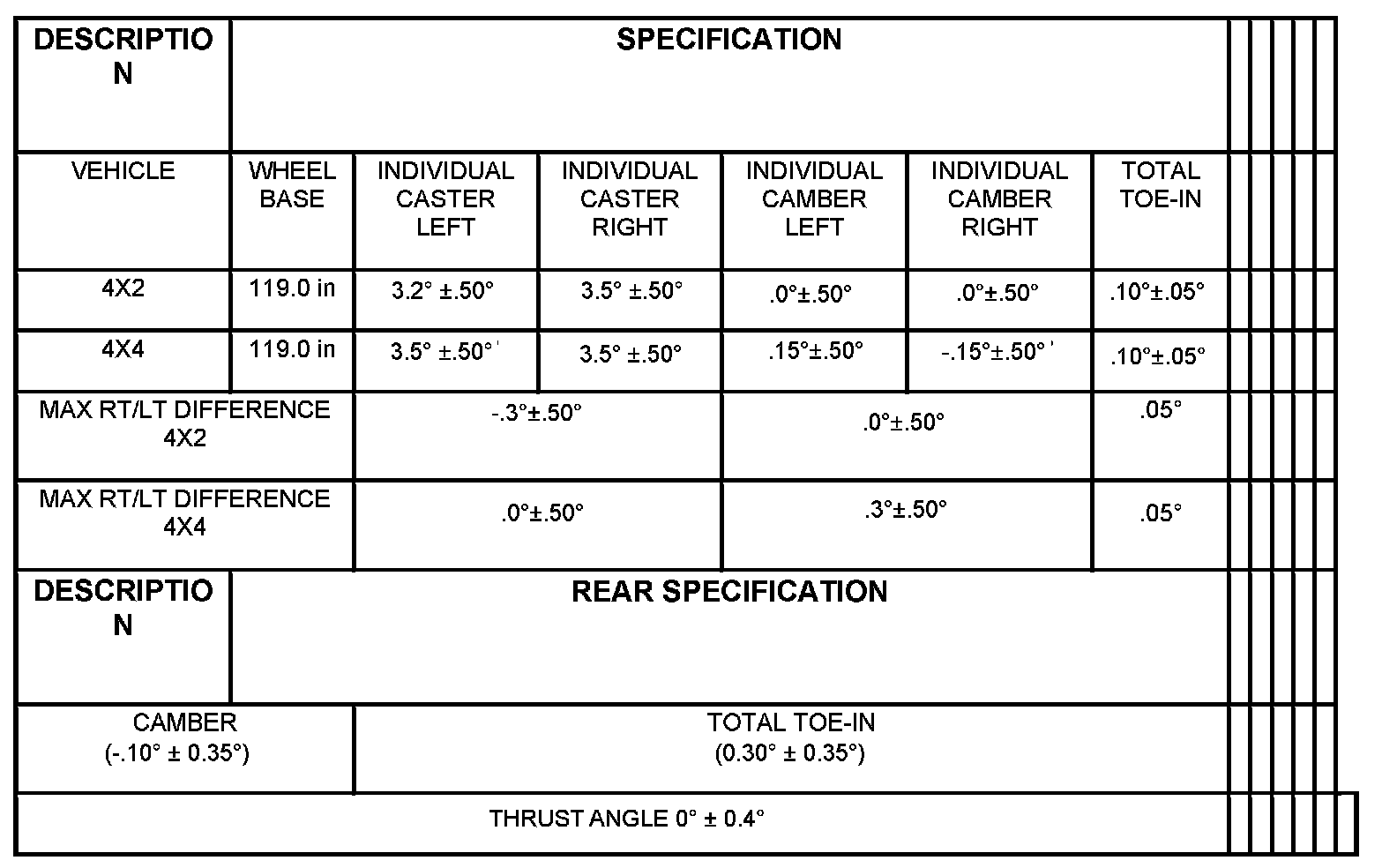 NOTE: All alignment specifications are in degrees.