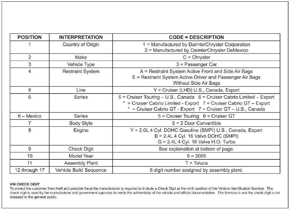 VEHICLE IDENTIFICATION NUMBER DECODING CHART - 2005