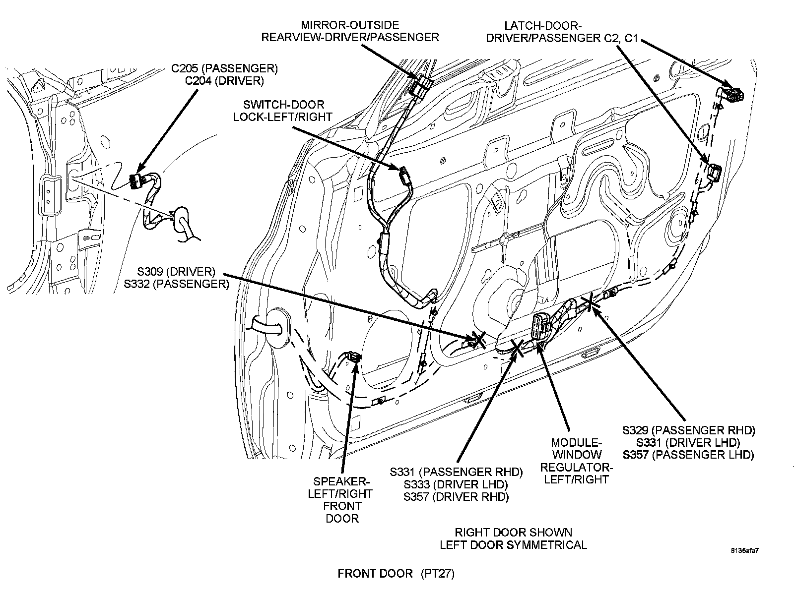 13 RIGHT FRONT DOOR AJAR SWITCH SENSE G74 20TN/RD