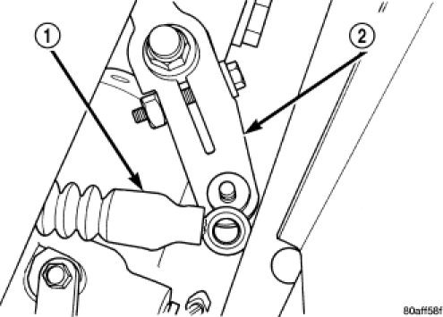 12. Install gear shift cable (1) to manual valve lever (2).