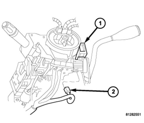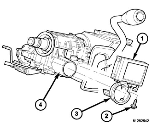 10. Remove the screw (2) that secures the SKREEM (1) to the steering column housing.