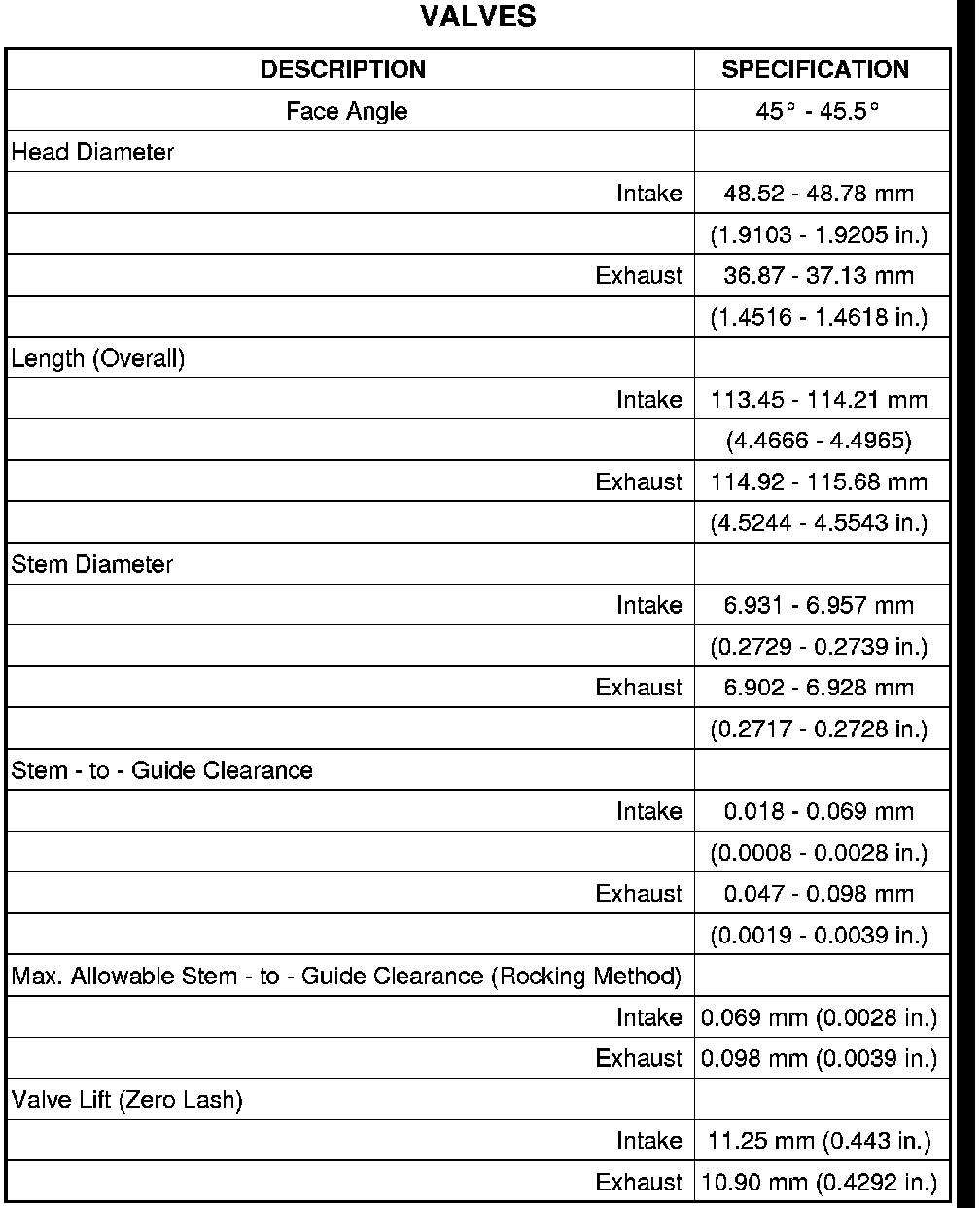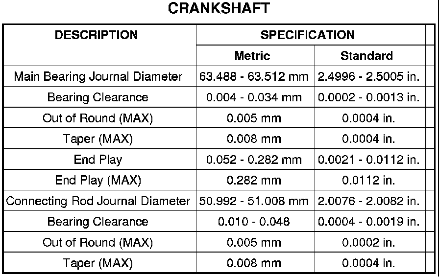 SPECIFICATIONS - 4.7L ENGINE