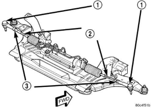 2. Loosen the tie rod adjusting jam nuts (3). Grasp each inner tie rod at its splines (2) and rotate it one way or the other until the front wheel toe is set to the preferred specification. [1][2]Alignment