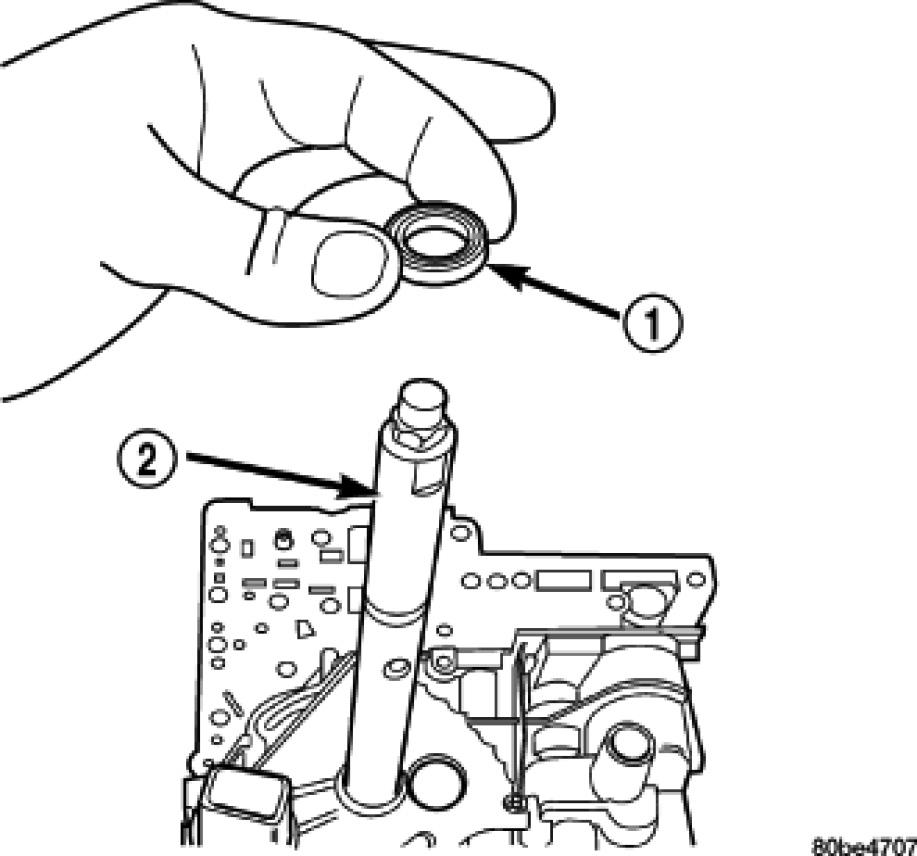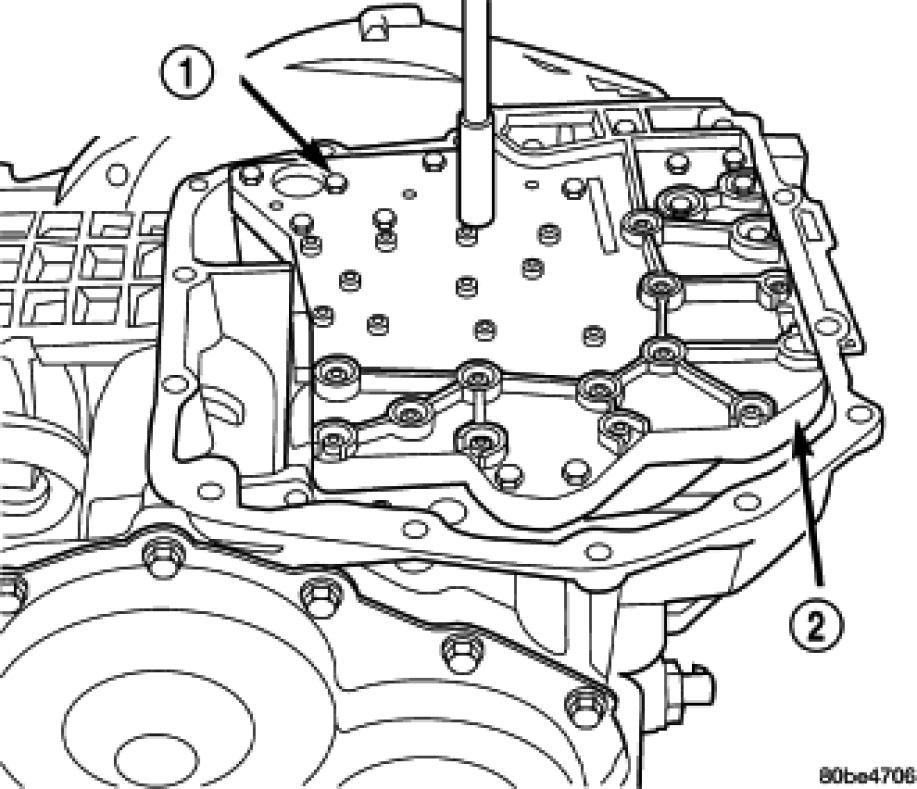 NOTE: To ease removal of the valve body (1), turn the manual valve lever fully clockwise to low or first gear.