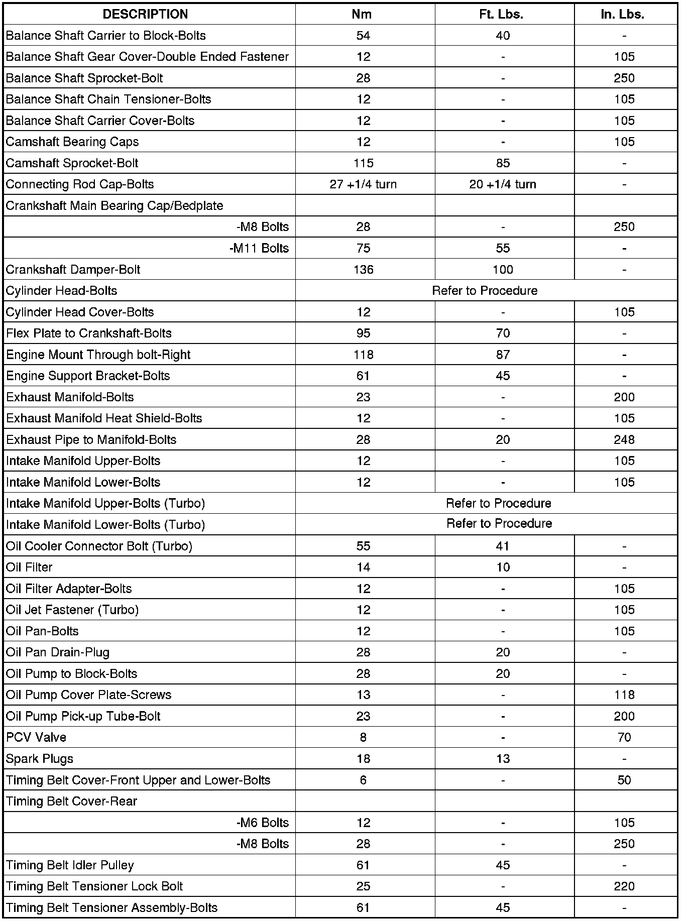 Engine Torque Specifications