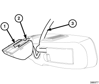 3. Disconnect the retaining tabs that secure the humidity sensor (1) to the mirror base (2) and slide the sensor off the base.