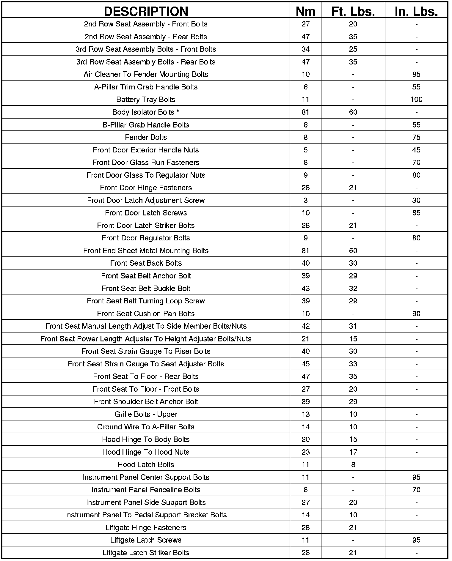 * Whenever a body isolator bolt requires servicing or tightening, it is necessary to remove the bolt and install new thread locker compound to the threads.
