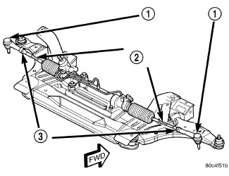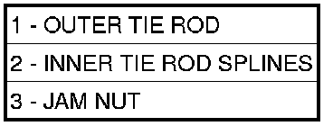2. Loosen the tie rod adjusting jam nuts (3). Grasp each inner tie rod at its splines (2) and rotate it one way or the other until the front wheel toe is set to the preferred specification. Wheel Alignment