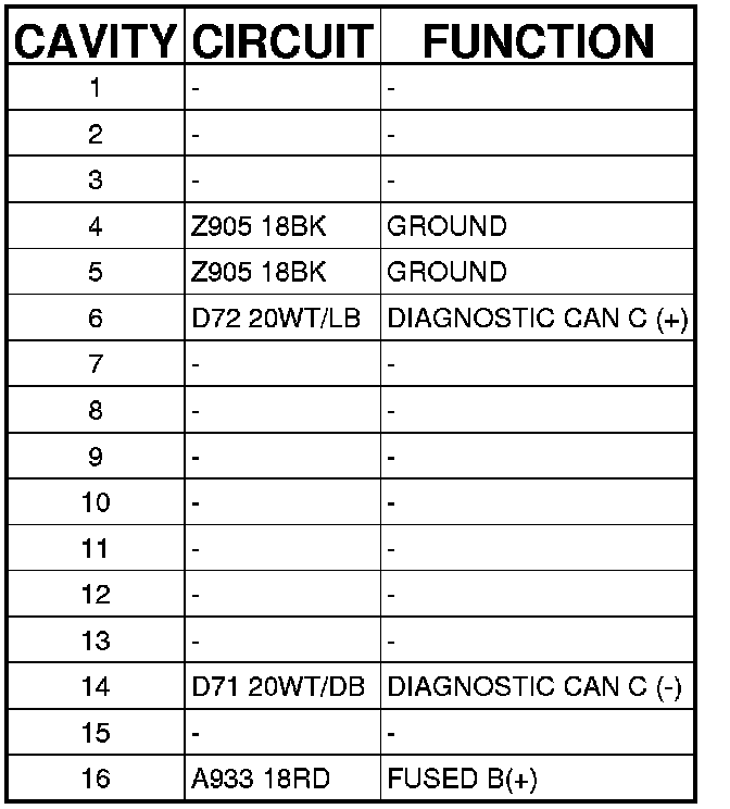 Data Link Connector: Diagrams