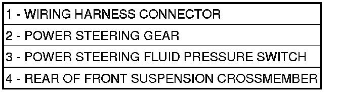 2. Locate the power steering fluid pressure switch (3) on the back side of the power steering gear (2).