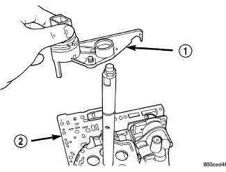 The valve body assembly (2) must be removed to gain access to and replace the transmission range sensor (1).