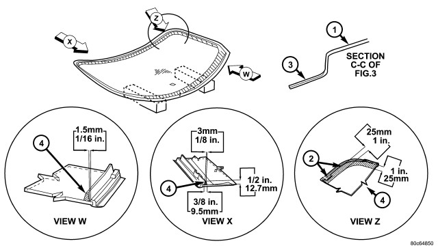 14. Clean excess urethane (4) from exterior with Mopar, Super clean or equivalent.
