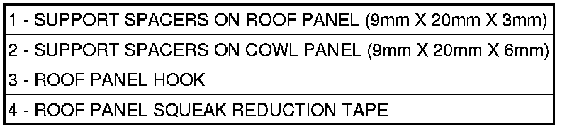 2. Verify squeak tape (2) on roof panel hooks. If not present, install squeak tape. Section C-C.