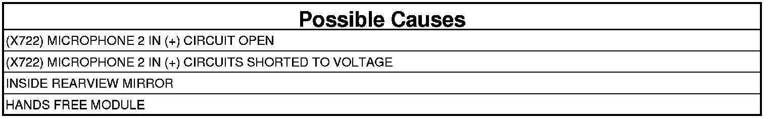- Repair the (X722) Microphone IN 2 (+) circuit for a short to voltage.