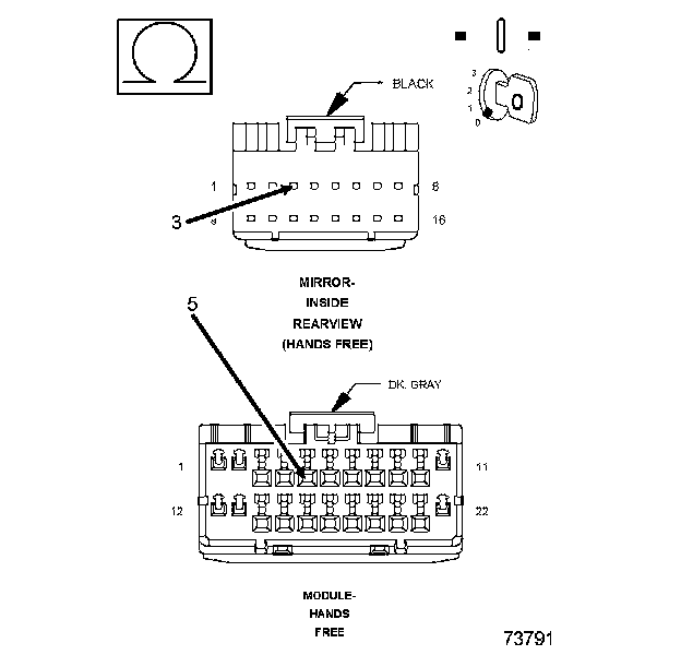 2. Measure the resistance of the (X722) Microphone 2 IN (+) circuit between the HFM connector and the inside rearview mirror connector.
