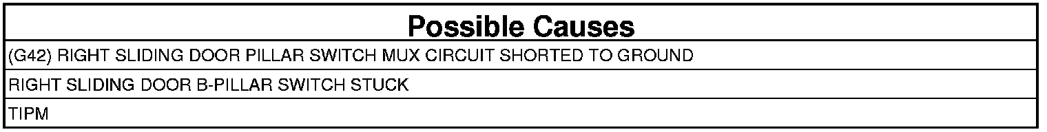 - Repair the (G42) Right Sliding Door Pillar Switch MUX circuit for a partial short to ground.