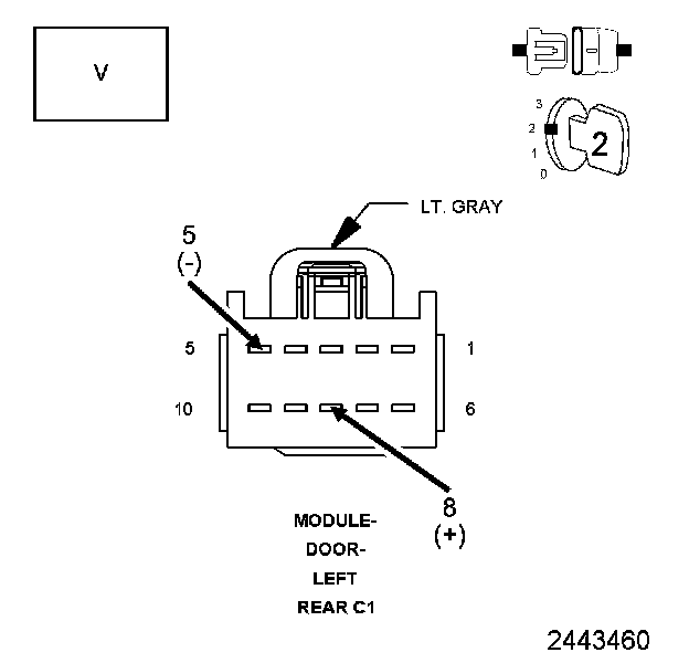 4. Using a voltmeter, measure the voltage between the (A113) Fused B(+) circuit and the (Z908) Ground in the Door Module C1 connector.