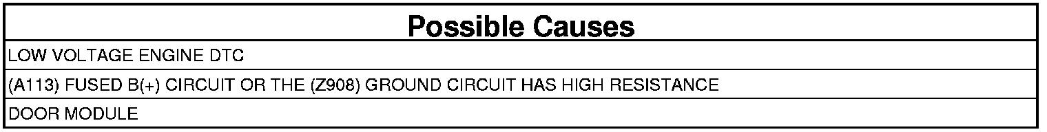 - Repair the (A113) Fused B(+) circuit or the (Z908) Ground circuit for high resistance.