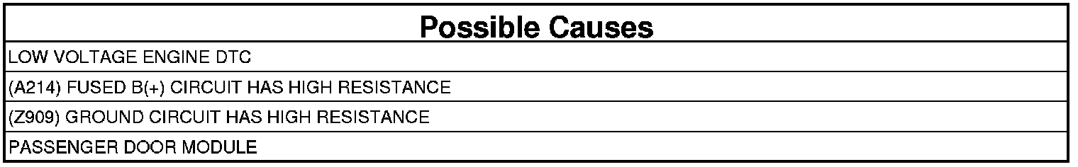 - Repair the (A214) Fused B(+) circuit or the (Z909) Ground circuit for high resistance.