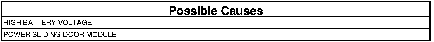 When the Power Sliding Door Module detects input voltage above 16.5 volts for more than 15 seconds, this code will set.
