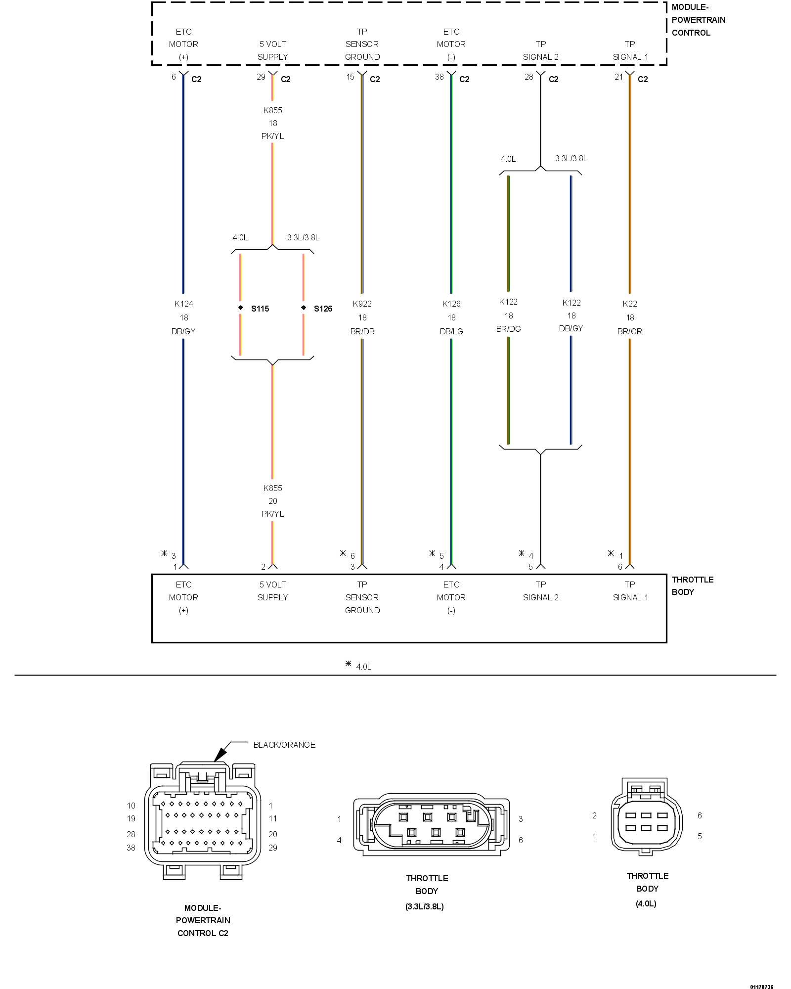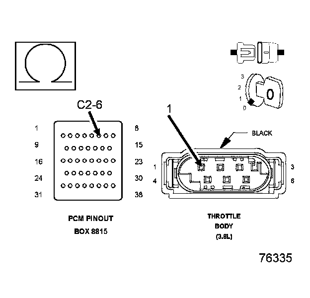 1. Using the wiring diagram/schematic as a guide, inspect the wiring and connectors between the Throttle Body and the Powertrain Control Module (PCM).