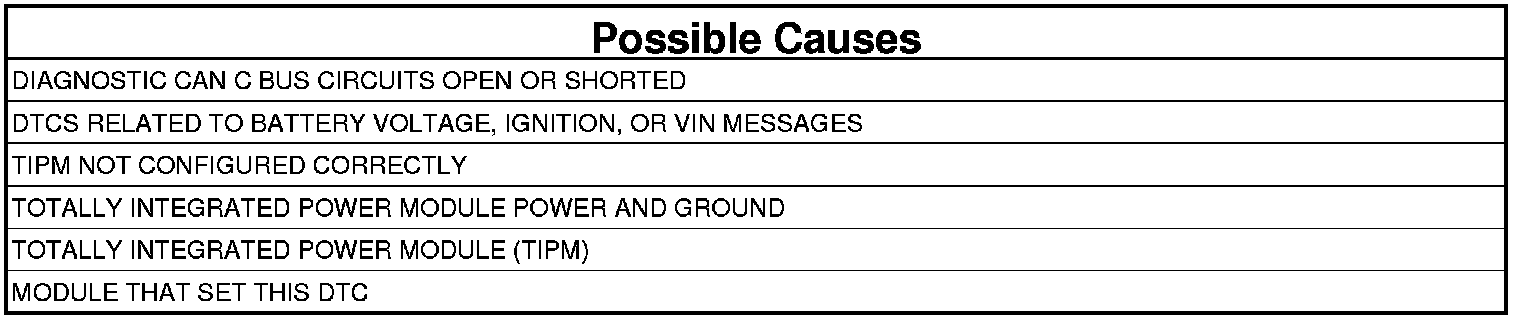 NOTE: Check for TIPM configuration, CAN C hardware electrical, VIN Missing/Mismatch, battery or ignition related DTCs.