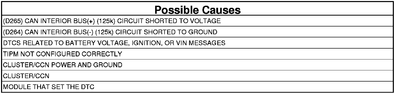 - Repair the (D264) CAN Interior Bus(-) (125K) circuit for a short to ground.