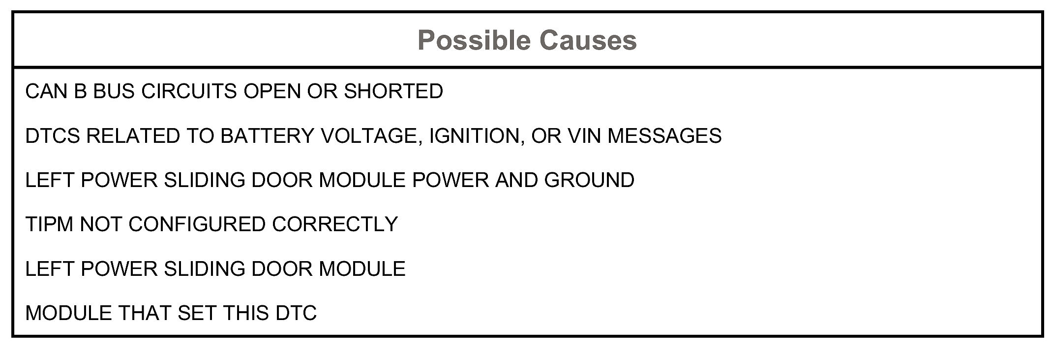 Bus messages not received from the Left Power Sliding Door Module for approximately two to five seconds.