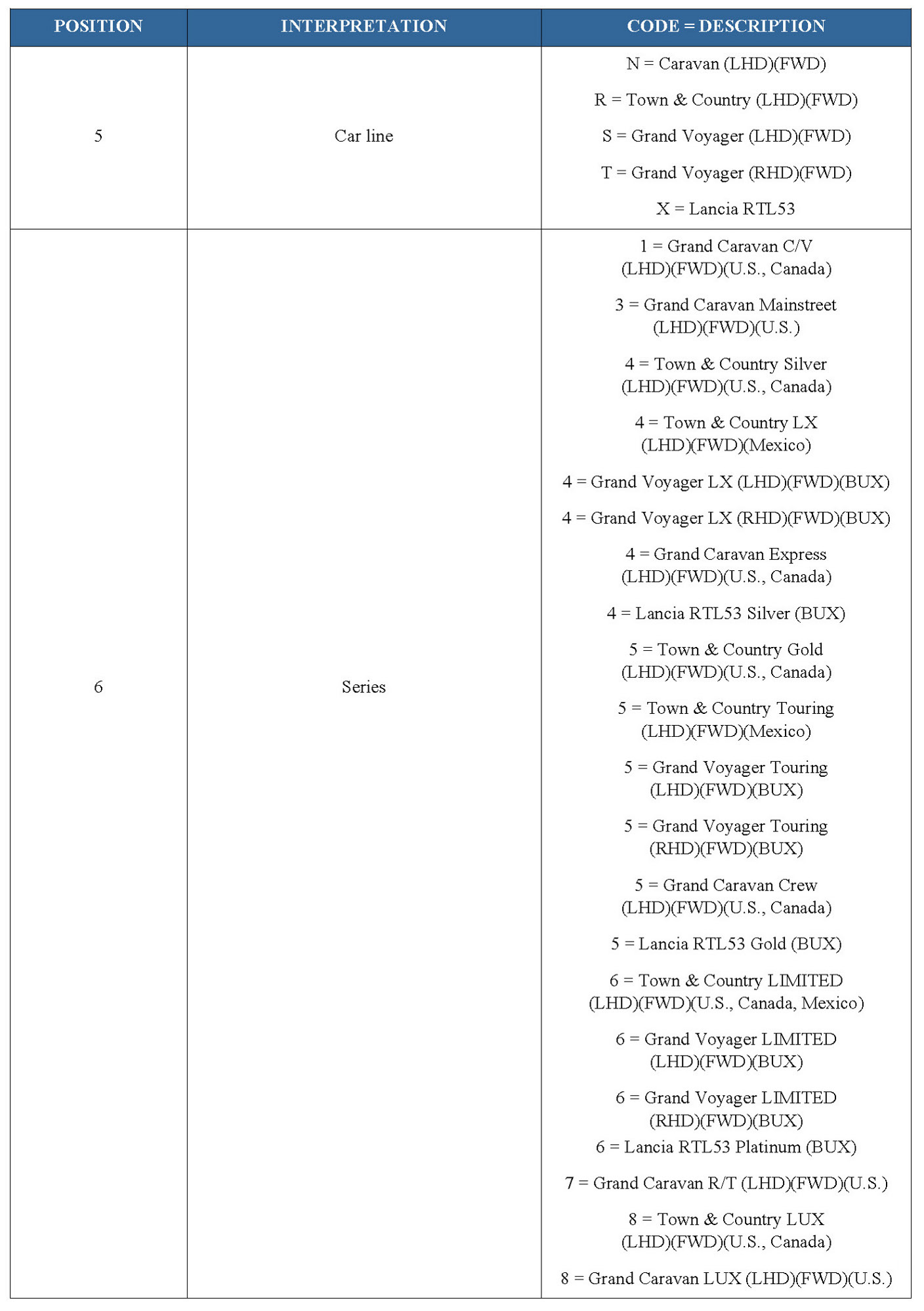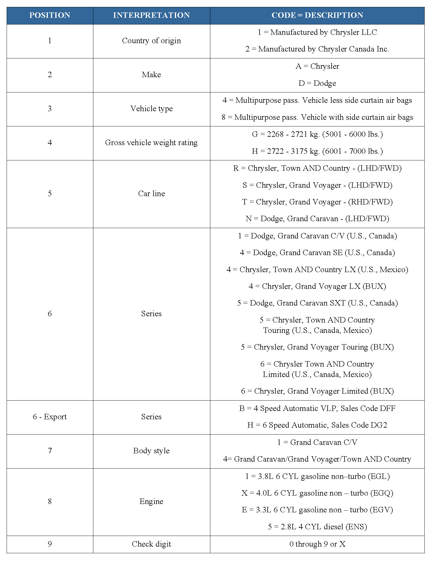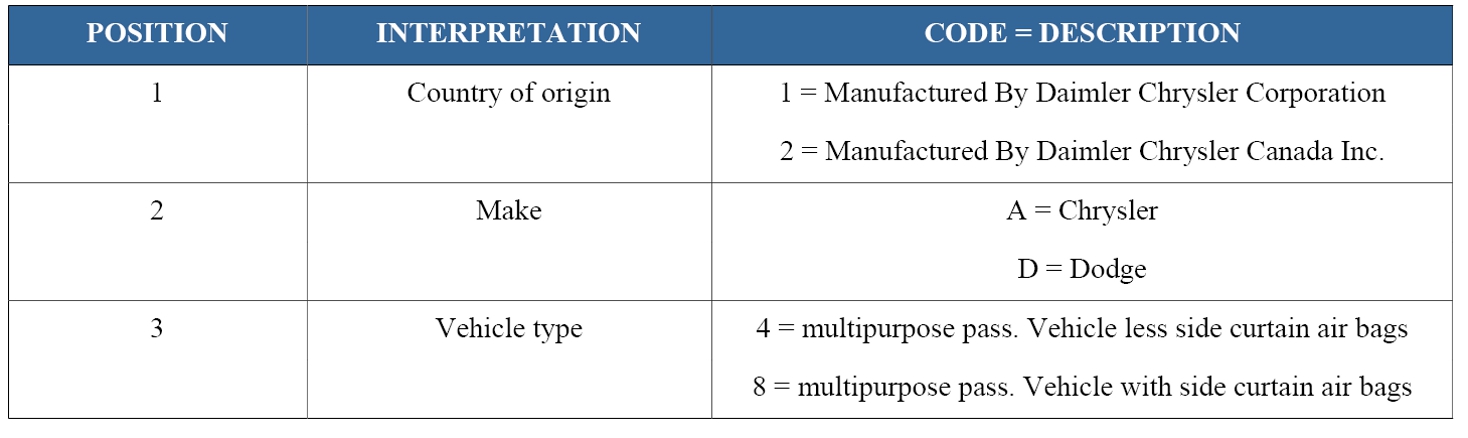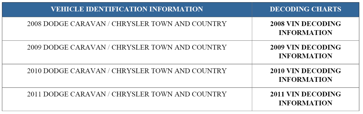 2011 VIN DECODING INFORMATION