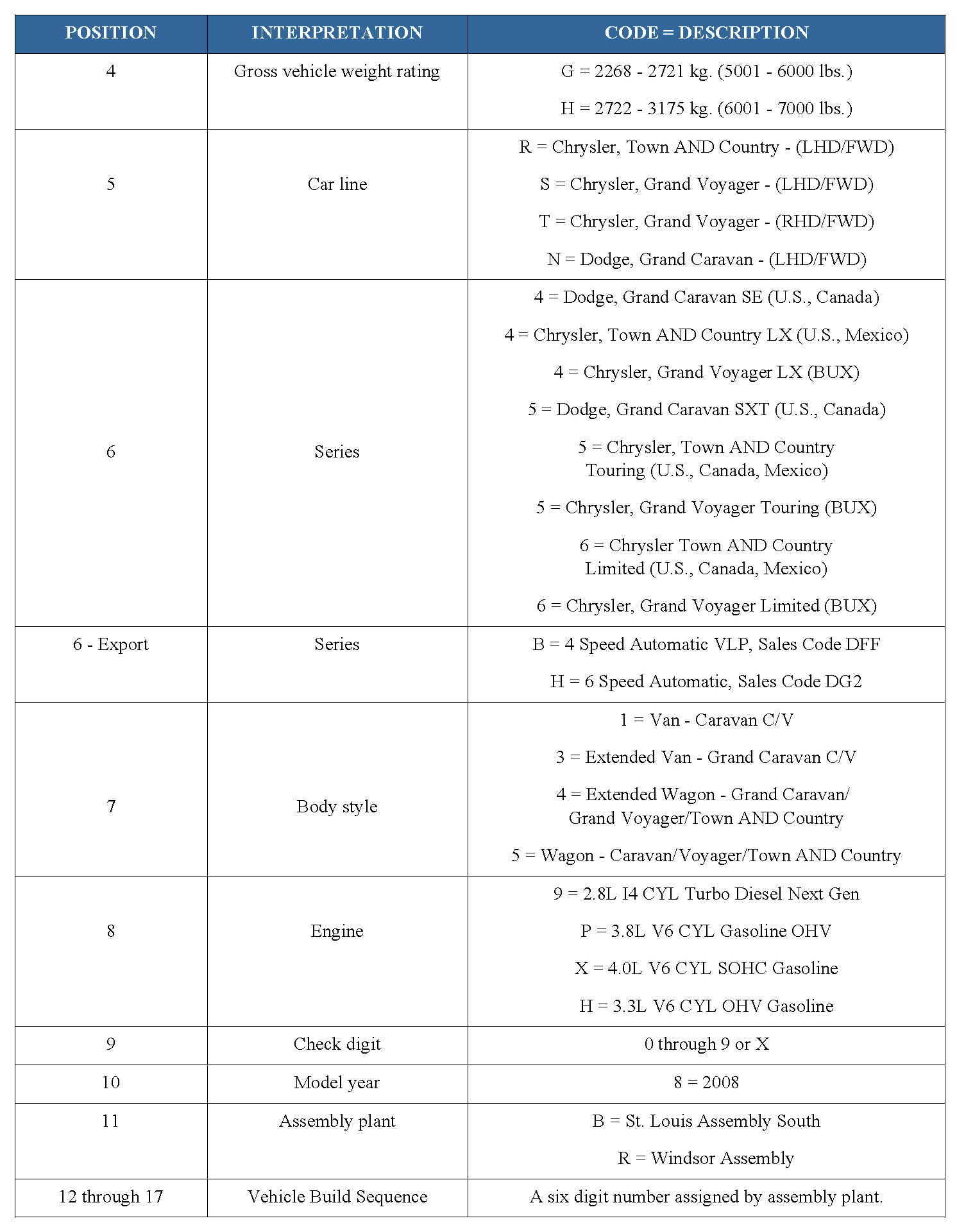 2008 VIN DECODING INFORMATION