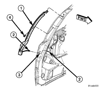 5. Remove the screws (4) holding the pinch sensor (1) to liftgate.