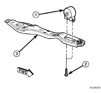 1. Install front engine mount (1) on crossmember (3). Install mounting bolts (1) and tighten to 55 Nm (41 ft. lbs.).