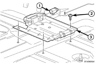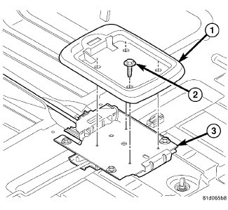 2. Remove the four screws (2) holding the console tray ()1 to the console bracket (3).